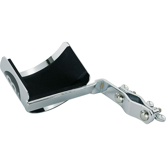 This unique attachment holds the cabasa safe and ready to use. The padded surface prevents it from slipping. Made of chrome-plated steel.